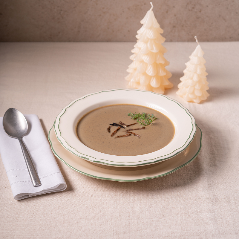 Aksamitna, intensywnie aromatyczna zupa z leśnych grzybów. Idealnie komponuje się z wigilijnym menu przywołując obrazy zimowych spacerów po sosnowym lesie.