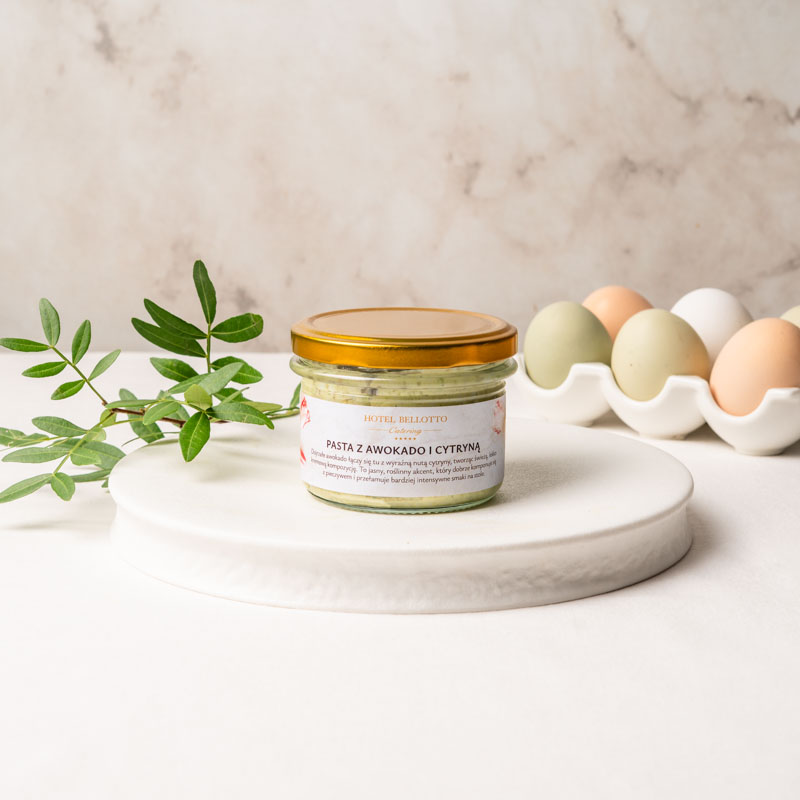 Dojrzałe awokado łączy się tu z wyraźną nutą cytryny, tworząc świeżą, lekko kremową kompozycję. To jasny, roślinny akcent, który dobrze komponuje się z pieczywem i przełamuje bardziej intensywne smaki na wielkanocnym stole.