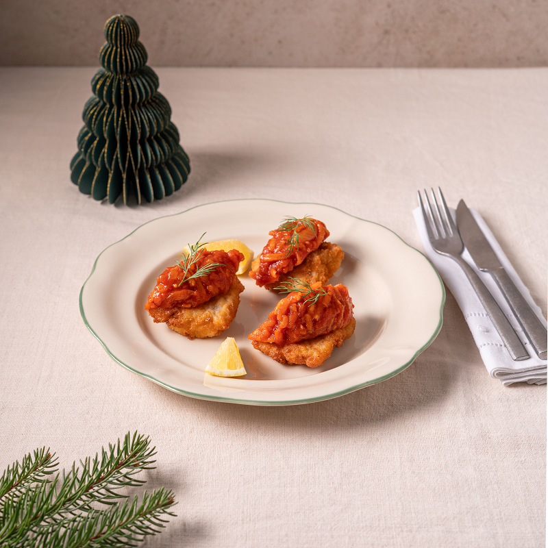 delikatny filet w warzywnym sosie z marchewką, selerem i aromatycznymi przyprawami. Klasyczne danie kuchni polskiej w naszym cateringu świątecznym i wigilijnym menu.