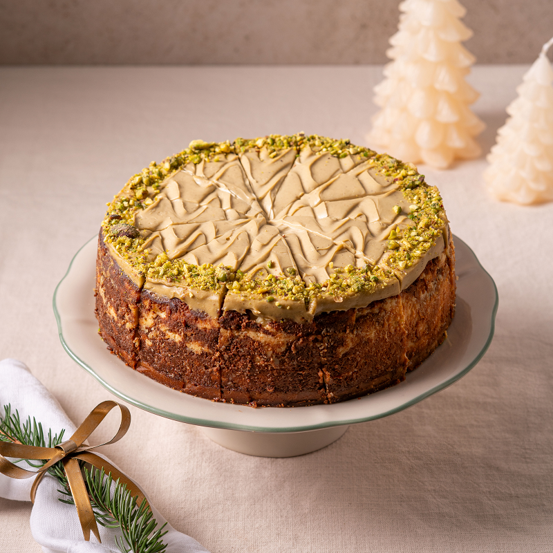 Delikatny sernik o nutach wanilii i prażonej pistacji. Wyrafinowany, lekko orzechowy, idealny na świąteczne popołudnie przy kawie.