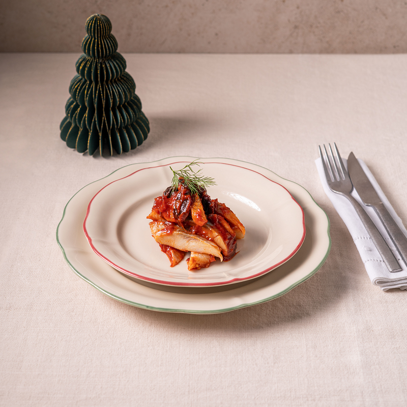 Śledzie w słodko-pikantnym sosie pomidorowym z cebulą i przyprawami. Ich wyrazisty smak budzi apetyt i idealnie komponuje się z zimowym pieczywem.